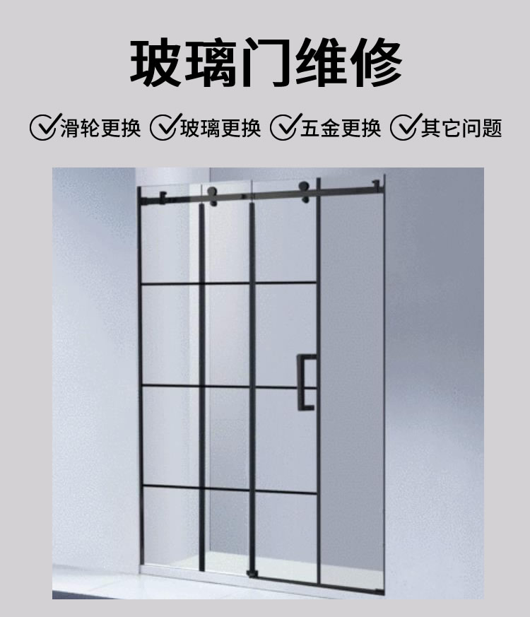 玻璃门坏了找享哈,享哈为用户提供玻璃更换、滑轮更换、五金更换等问题。