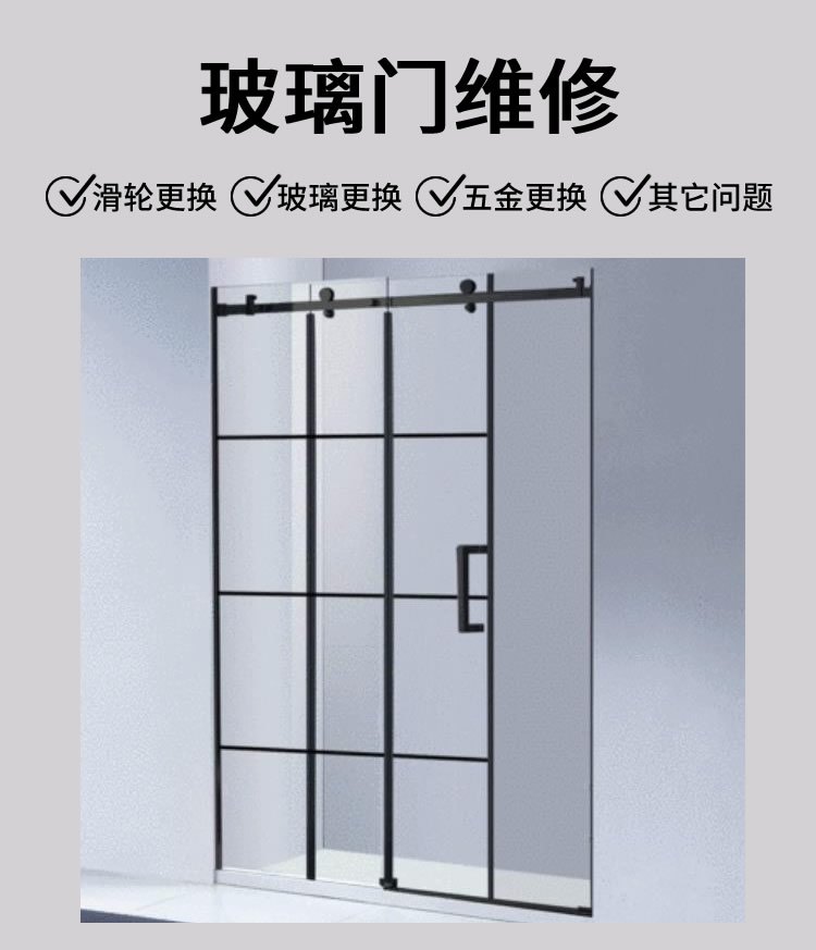 玻璃门坏了找享哈,享哈为用户提供玻璃更换、滑轮更换、五金更换等问题。