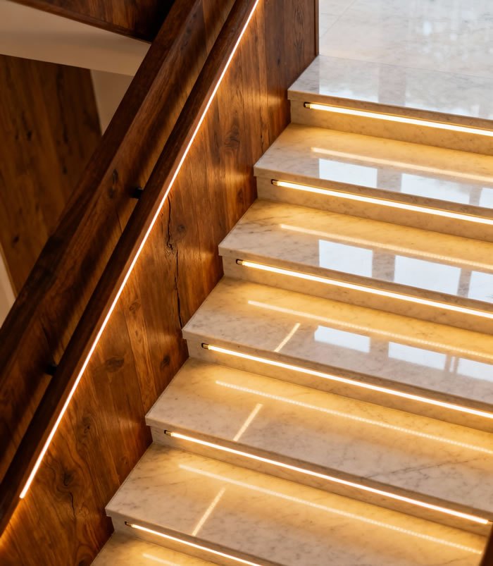 照明设计:楼梯应配备足够的照明,确保夜间使用安全。
