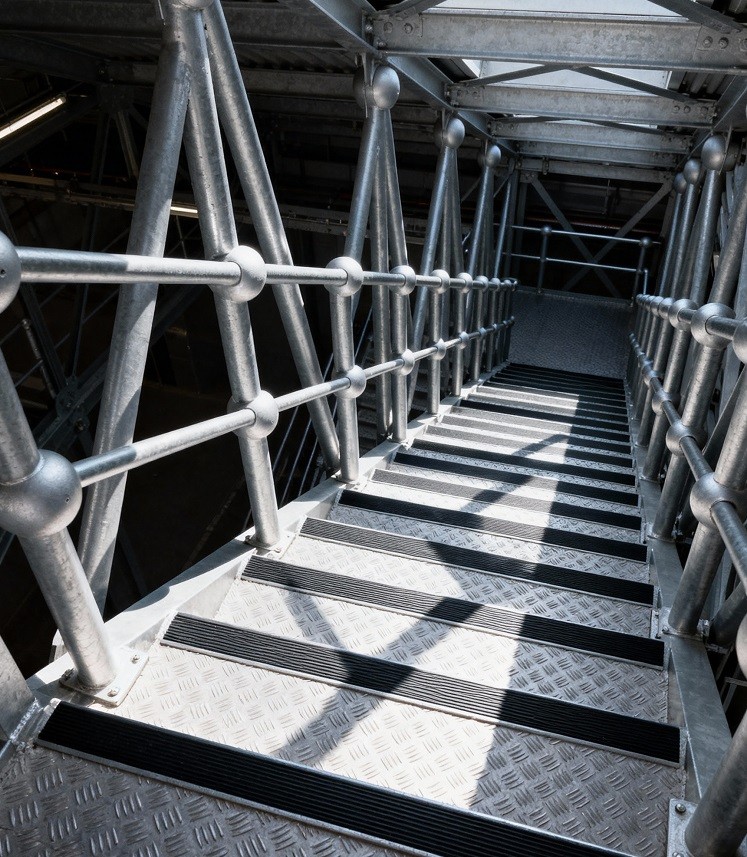 钢构楼梯是由钢构件搭建而成,通常采用焊接或螺栓连接的方式,结构轻巧、造型美观,广泛应用于写字楼、商业综合体等现代建筑。