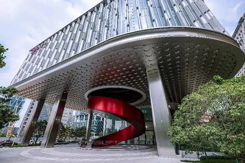 2025年12月26日,在广州海珠区琶洲电商总部核心区的OneM当代艺术中心,一座以全钢结构锻造而成的旋转楼梯创下了“无支撑旋转楼梯的单段最大高度”的威尼斯世界纪录。这座旋转楼梯自设计之初便备受关注,其总高31.342米,总长186.315米,直径13.6米。整体旋转楼梯造型如一条炽热飘逸的红色缎带,从地下层蜿蜒盘旋而上,贯穿多层空间,不仅衔接起商业场景与城市视野,更希望在未来成为广州乃至大湾区一抹红色城市文化新名片和新地标。